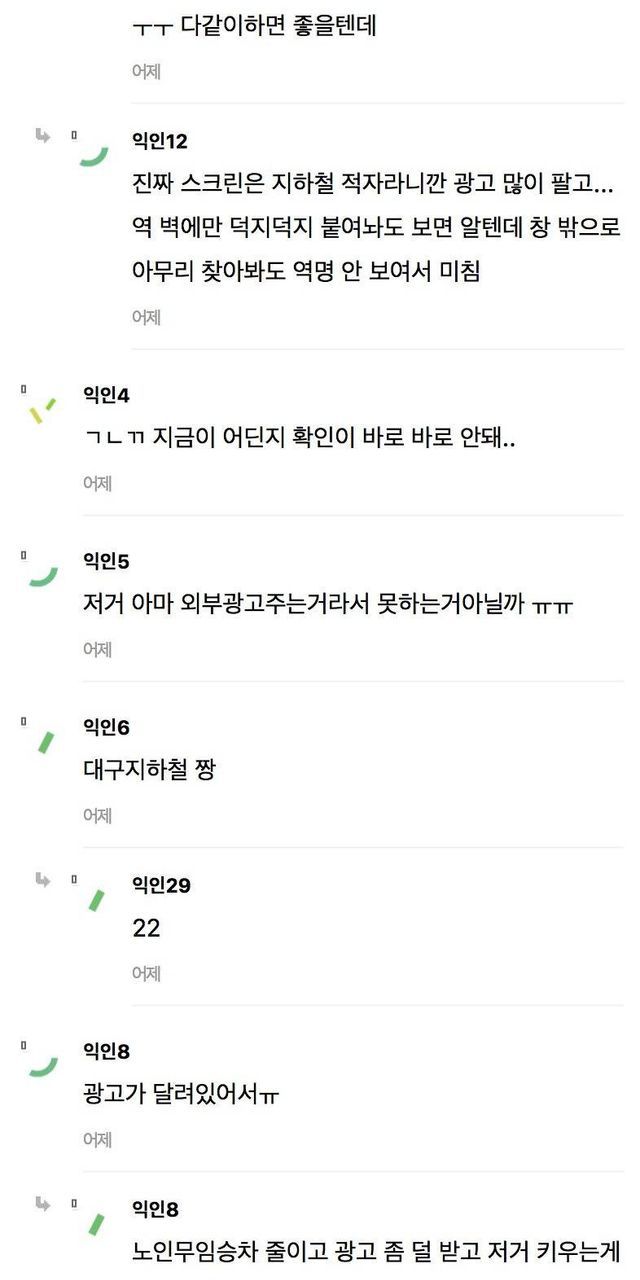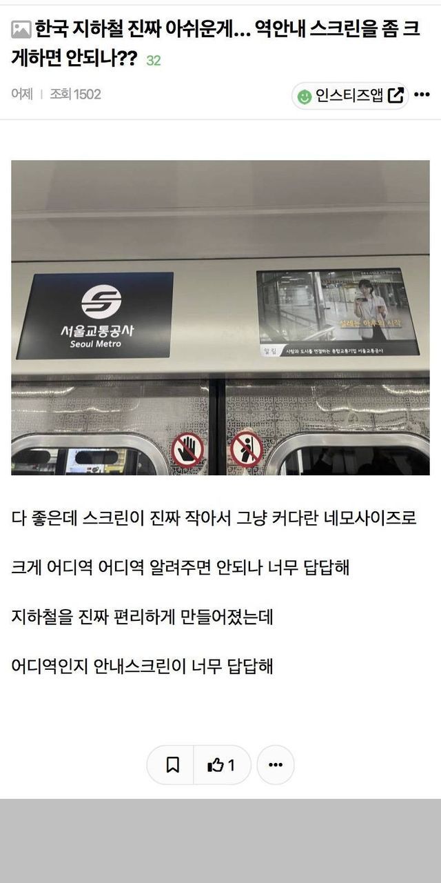 한국 지하철 진짜 아쉬운게...역안내 스크린을 좀 크게하면 안되나??..