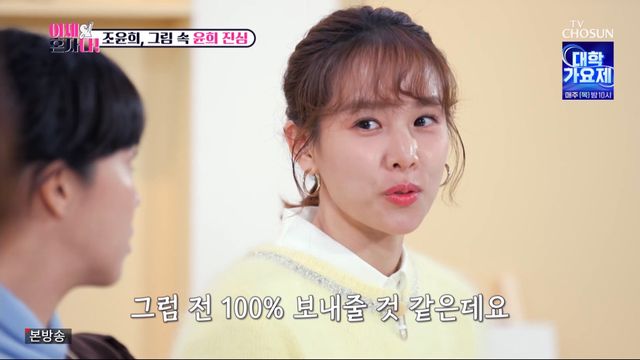 이후 전문가와 자신이 그린 그림에 대해 얘기를 나누던 조윤희는 "저는 저한테 관대하지 못 한 것 같다. 주변에서 잘한다고 해도 제 스스로 그렇게 느끼지 않으면 너무 괴롭다"라고 고백했다.
