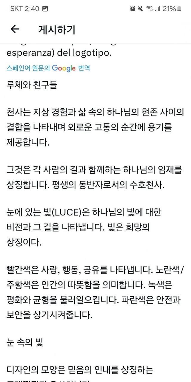 최근 공개된 바티칸 "공식" 마스코트 "루체" 짱