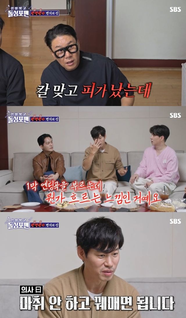 유준상은 "'(2막 시작 전) 20분 만에 봉합해야 한다'고 했더니, 의사가 '마취 안 하고 꿰매면 된다'고 하더라"며 마취 없이 봉합을 감행했다고 밝혀 놀라움을 더했다.