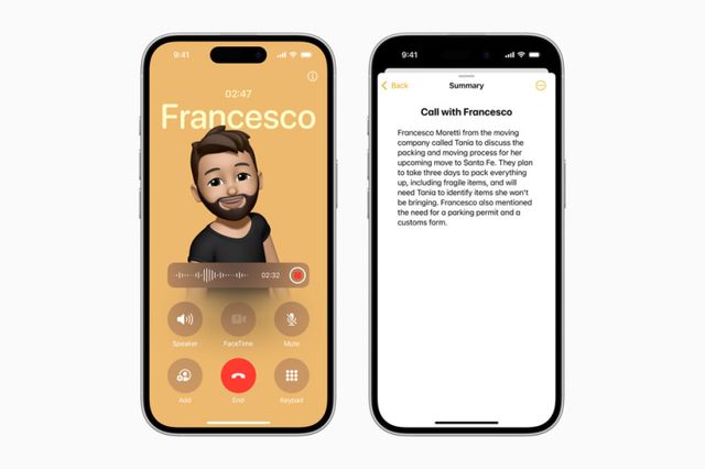 앞으로 아이폰 '메모' 및 '전화' 앱에서 오디오 녹음, 전사, 요약 기능을 이용할 수 있다. 상대방과 전화하는 화면의 왼쪽 상단에 생성된 아이콘을 누르기만 하면 된다. 대화 내용은 곧장 문자로 변환해 메모에 저장하고, 다시 듣기와 요약 등을 뒷받침한다.