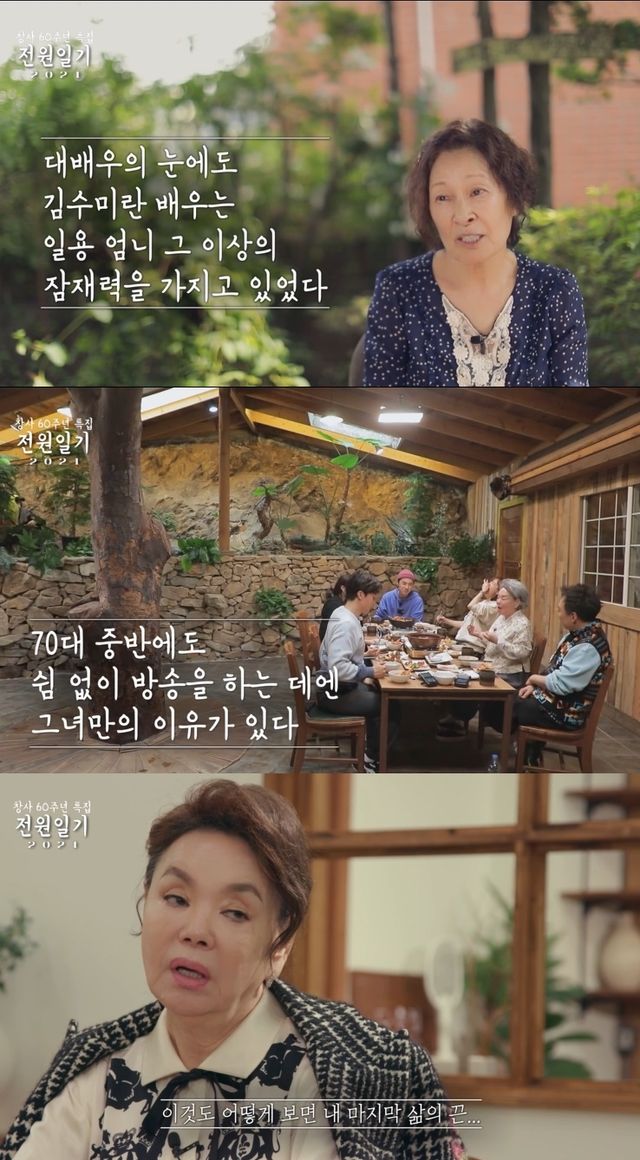 29일 MBC ON은 지난 25일 별세한 故 김수미를 추모하며 2021년 방송된 '다큐플렉스 전원일기2021'를 재편집한 특집 방송을 꾸렸다.