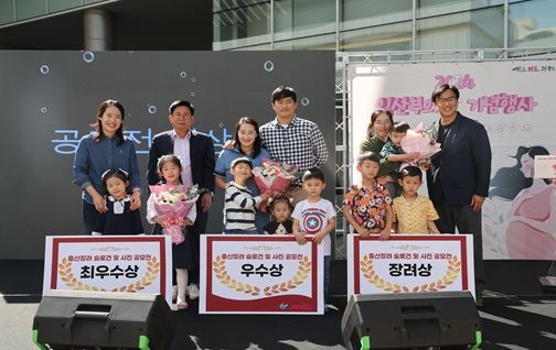 | ▲ 출산 장려 슬로건 및 사진 공모전의 수상자들과 기념촬영 중인 박강수 마포구청장 |