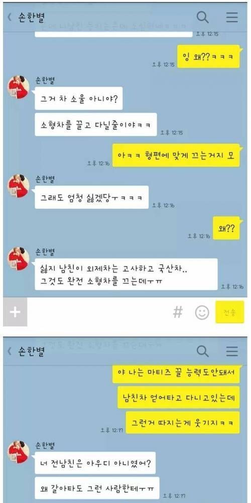 소형차 끄는 남친 무시하는 친구에게 돌직구,,