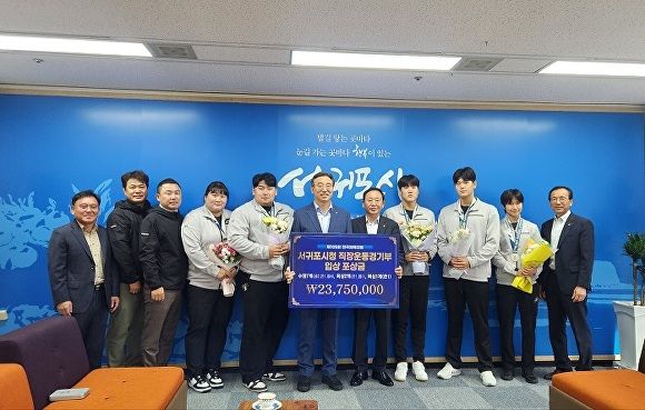 [조이뉴스24 배정화 기자] 서귀포시(시장 오순문)는 29일 시장 접견실에서 ‘제105회 전국체육대회’ 포상식을 개최했다.