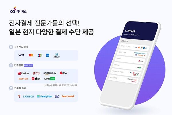 [포인트경제] 국내 전자결제 시장 선도 기업 KG이니시스는 국내 쇼핑몰의 해외 진출을 위한 ‘일본 통합 간편결제’ 서비스를 론칭했다고 30일 밝혔다.