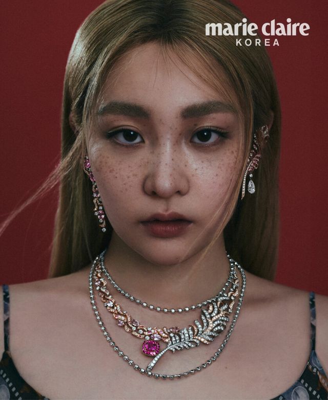 하우스의 상징인 까멜리아를 화려하게 수놓은 까멜리아 하이 주얼리 컬렉션의 이어링과 네크리스 모두