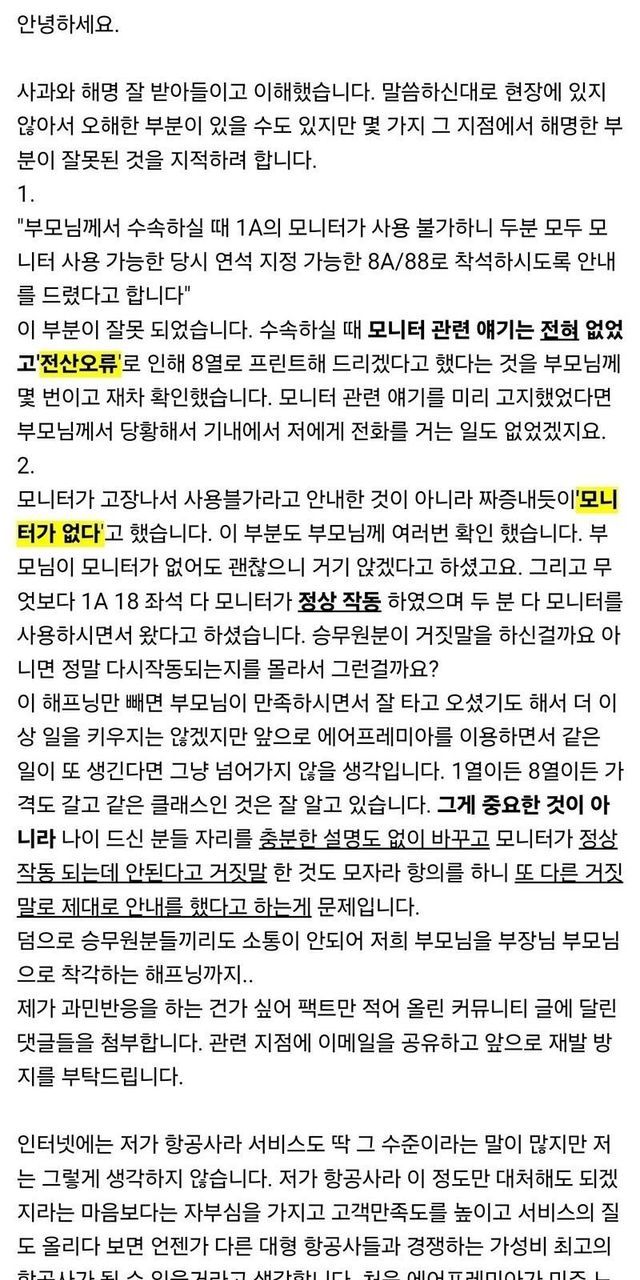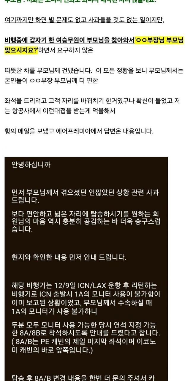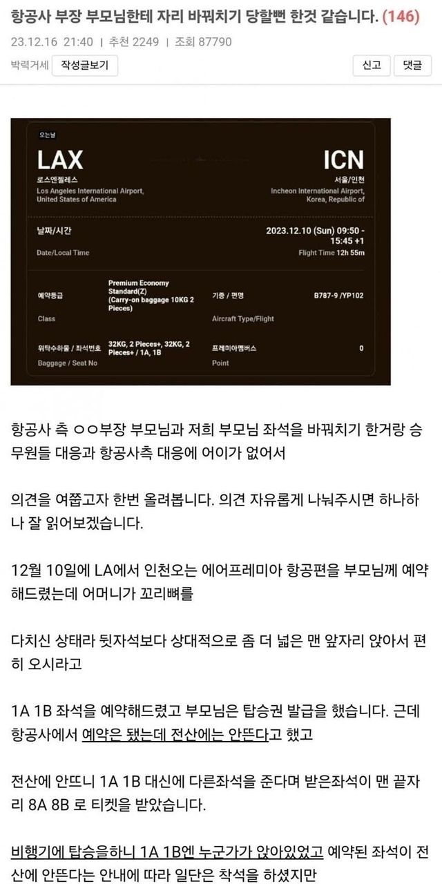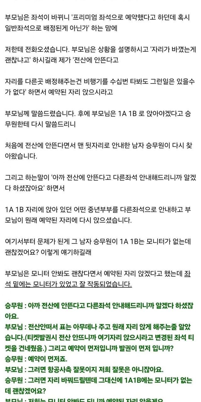 항공사 부장 부모에게 자리 강탈 당할뻔한 보배회원!!!