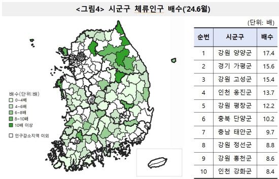 ◇ 체류인구 배수 양양·가평·고성 순…교통·관광 영향