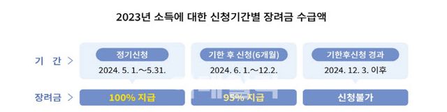 신청한 장려금은 요건을 심사해 내년 1월 말에 지급할 예정이다. 지난 5월 정기 신청기한에 신청한 가구의 가구당 평균 지급액은 106만원이었다. 기한 후 신청하면 장려금의 100% 아닌 95%를 지급한다.