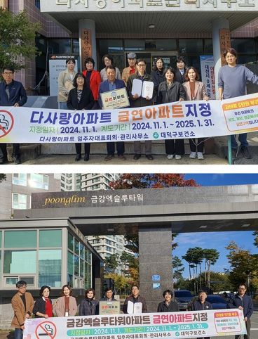 이번 지정을 통해 다사랑아파트와 금강엑슬루타워아파트는 각각 대덕구의 제4호, 제5호 금연아파트가 된다.