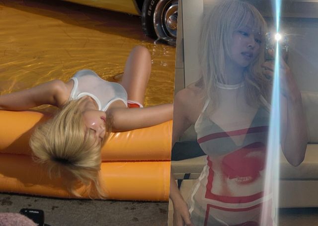 해당 게시물 속 제니는 금발 헤어스타일에 화이트 민소매 시스루 원피스를 입은 모습이다. 특히 안에 블랙 속옷을 매칭해 아찔한 몸매라인을 부각시키며 아름다움에 감탄을 더한다.