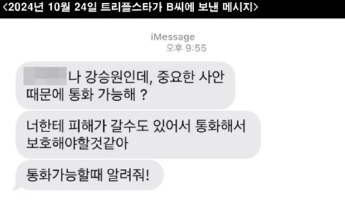 이뿐만 아니라 트리플스타가 A 씨에게 보낸 반성문 일부 내용에는 더욱 심각한 내용이 담겨있었다.