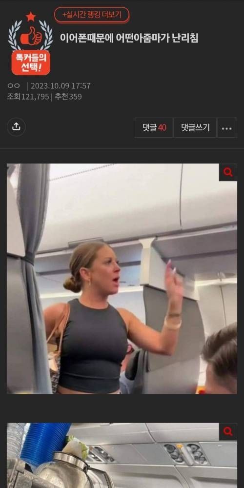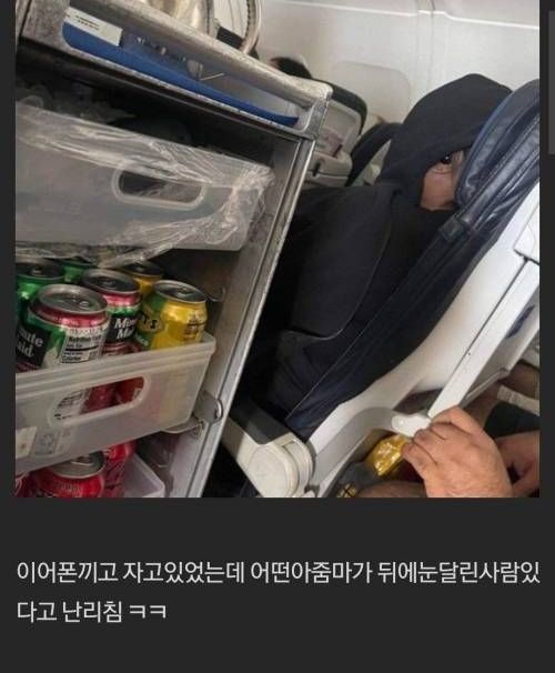 어떤 아줌마가 비행기에서 이어폰 낀 걸로 난리침,,