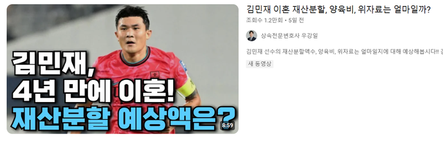 영상에서 우 변호사는 김민재가 재산분할로 “최소 80억 원 이상을 전처에 지급했을 것”이라고 내다봤다.