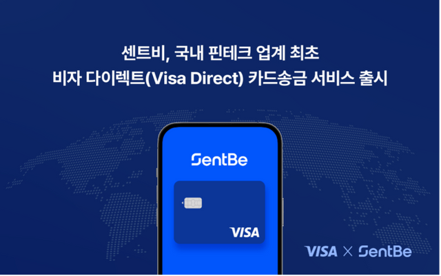 글로벌 외환 토탈 솔루션 기업 ‘센트비(SentBe)’가 글로벌 결제기술기업 비자(Visa)와 손잡고 국내 핀테크 업계 최초로 비자의 글로벌 결제 네트워크를 통해 실시간 간편 해외 송금이 가능한 ‘비자 다이렉트(Visa Direct) 카드송금 서비스’를 출시했다.
