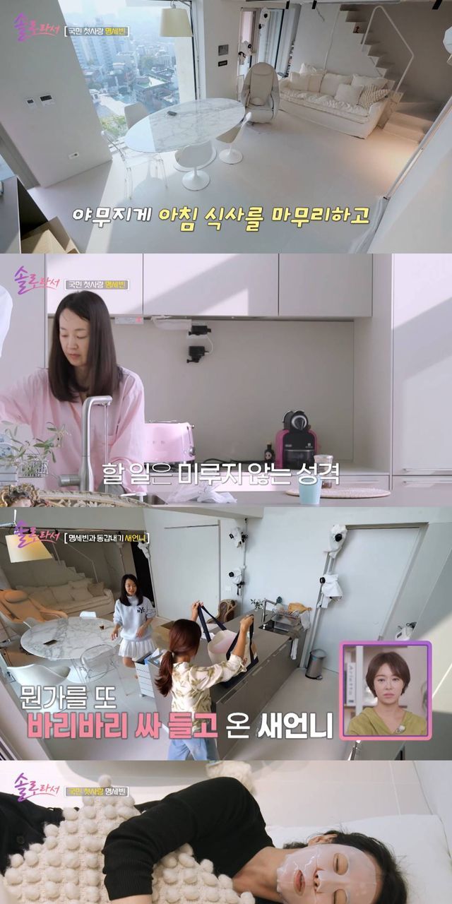 먼저 '국민 첫사랑'이라는 수식어로 등장한 명세빈은 동갑내기 새언니와의 일화를 전하거나, 그릇 덕후의 모습을 보이며 매력적인 싱글 일상을 보여줬다. 능숙한 요리솜씨도 돋보였다. 폴로리스트로 일상을 보내는 모습이 눈길을 끌었다.