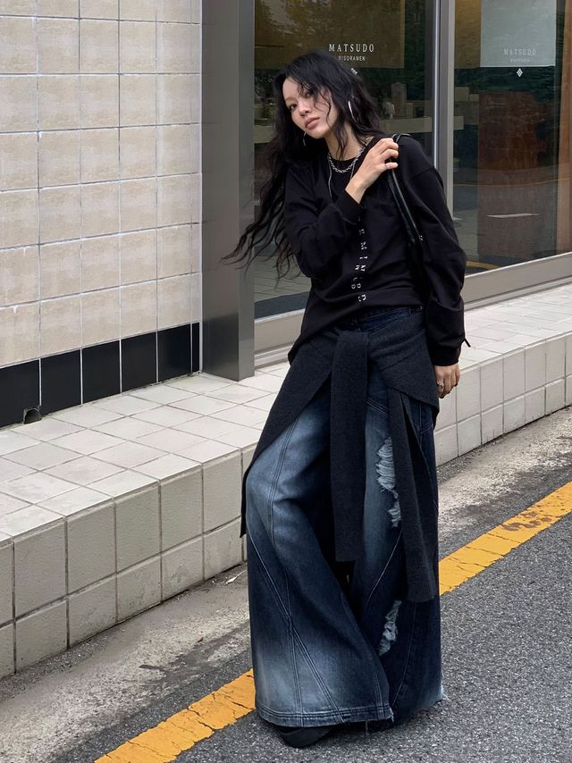 A 레이어드된 제품은 사진으로 그 매력을 모두 전하기 어려워요. 특히 와이드한 팬츠나 랩 팬츠는 직접 입고 걸어야 진정한 매력과 멋이 보이죠. 바람이 불고, 걸음으로 다리가 교차할 때 실루엣이 더욱 돋보이거든요. 그래서인지 혹자는 실제로 제가 착용한 영상을 따로 찾아본다고 하더라고요.