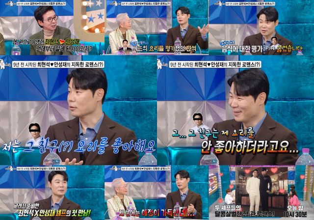 [이데일리 스타in 김가영 기자] ‘라디오스타’에서 최현석 셰프와 안성재 셰프의 지독한 ‘혐관 로맨스(혐오관계+로맨스)’가 시작된 첫 만남에 대한 에피소드가 공개된다. 과거 안성재 셰프의 요리를 평가했던 최현석 셰프는 “저는 그 친구(?) 요리를 좋아해요”라며 애정 어린 칭찬을 했었다고 밝혀 눈길을 모은다.