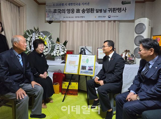 30일 안양시에 따르면 국방부 유해발굴감식단은 송 일병의 유해를 유족에게 돌려주는 ‘호국의 영웅 귀환행사’를 안양시에 거주하는 유가족 송재숙씨의 자택에서 열었다.