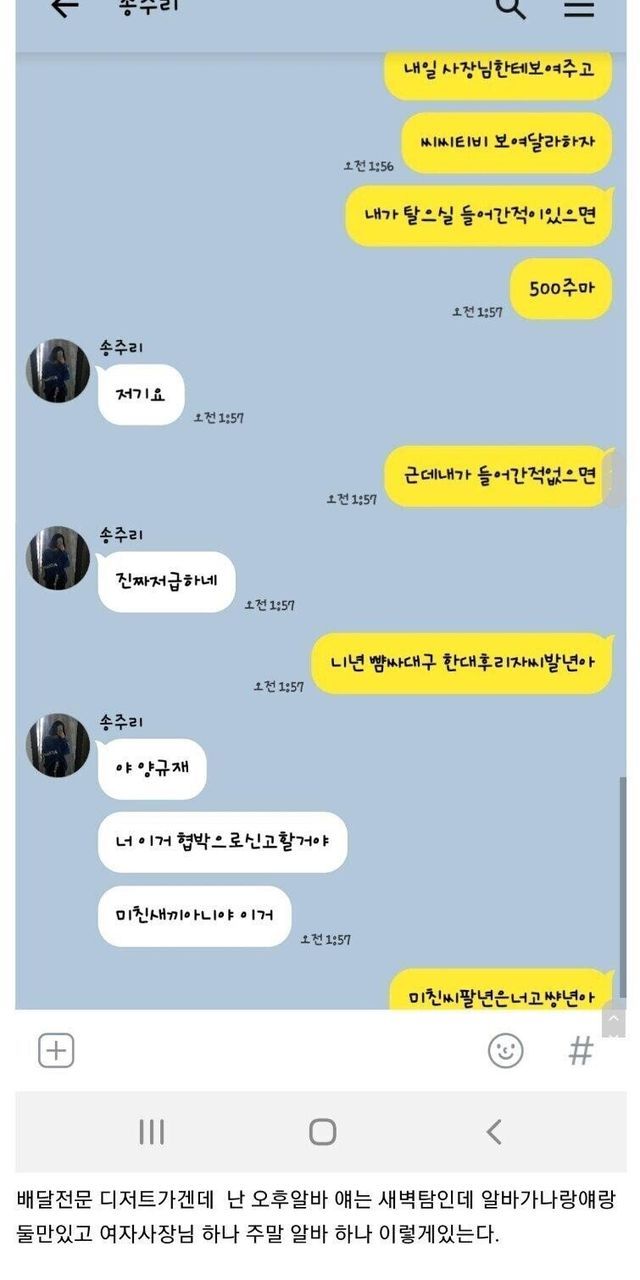 새벽에 카톡 받은 아르바이트생