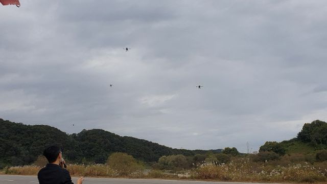 탑스커뮤니케이션과 베이리스는 지난 29일 대전 드론 공원에서 ‘2024 드론 자율 충돌회피 실증 행사’를 개최했다. 이 자리에서 연구진은 한국 주도로 제정된 ‘드론 통신 국제표준 UAAN’을 이용해 드론 간 자율 충돌회피 기술을 공개했다.