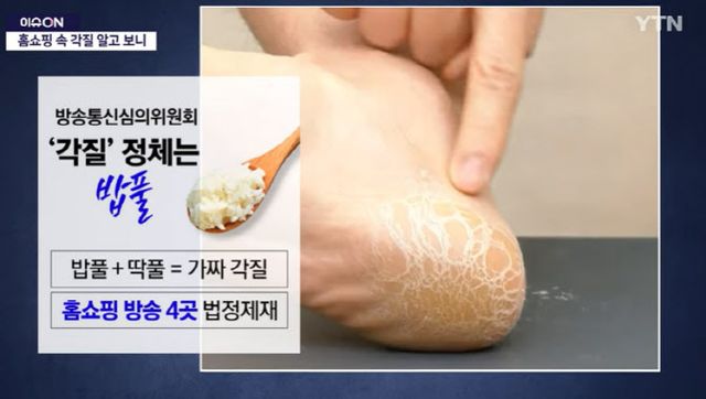 밥풀 등을 이용해 인위적으로 만든 ‘가짜 각질’을 사용해 판매하는 각질제거제 효과가 뛰어난 것처럼 연출한 홈쇼핑 업체들이 법정제재를 받게 됐다.