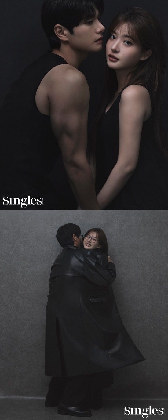 커플 화보 촬영에서 두 사람은 스킨십이 포함된 연출에도 불구하고 유쾌하고 편안한 호흡을 보여줬다.
