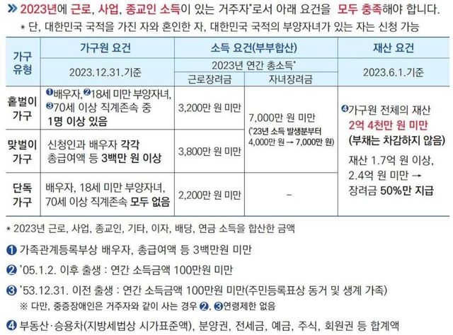 근로장려금은 저소득 근로 가구를 위한 정부 지원금이다. 단독 가구의 경우 부부 합산 소득이 2200만 원 미만, 홑벌이 가구는 3200만 원, 맞벌이 가구는 3800만 원 미만이어야 신청 가능하다. 또한 가구원 전체 재산 합계가 2억 4000만 원을 넘지 않아야 한다.