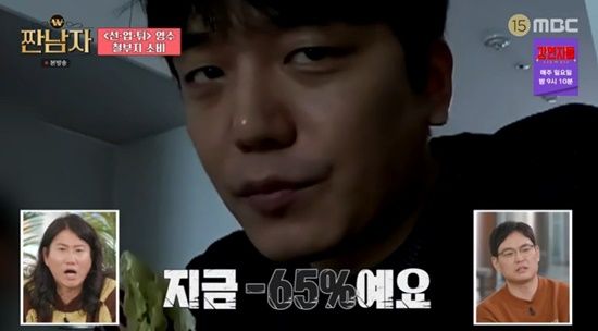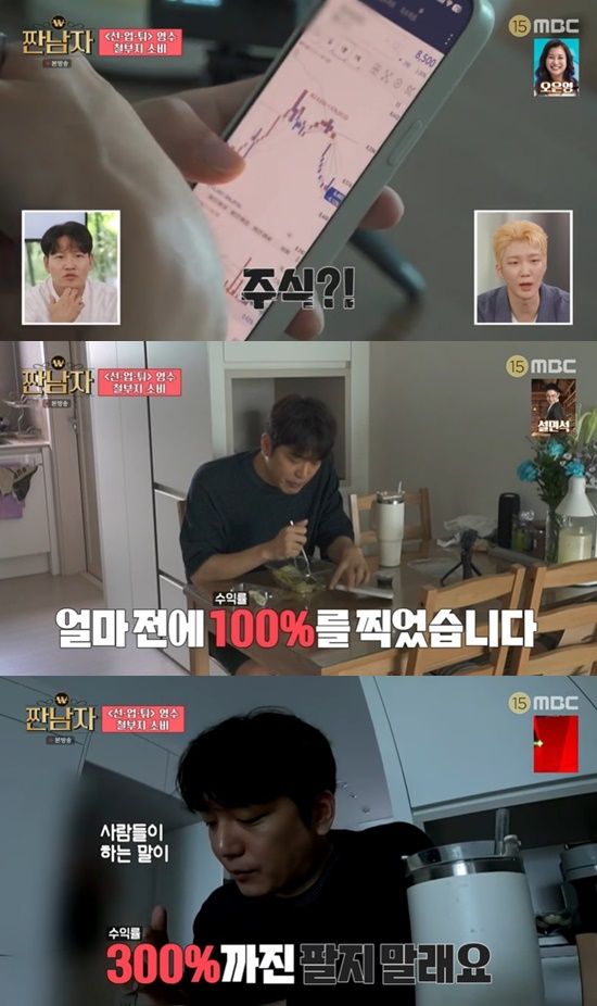 이어 "제가 산 주식이 얼마 전 수익률 100%를 찍었다. 사람들이 하는 말이, 수익률 300%까지는 팔지 말라고 하더라. 그래서 추가 매수를 했는데 지금 마이너스 65%다"라고 말하며 좌절했다.