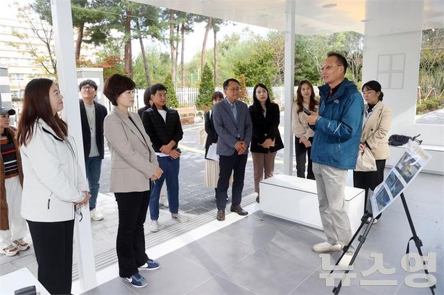 이번 현장점검은 이의초등학교 인근에 조성 된 어울터 설치 공사가 완료됨에 따라 현장을 직접 확인하고, 학부모와 학교 관계자들의 의견을 수렴하기 위한 목적으로 진행됐다.