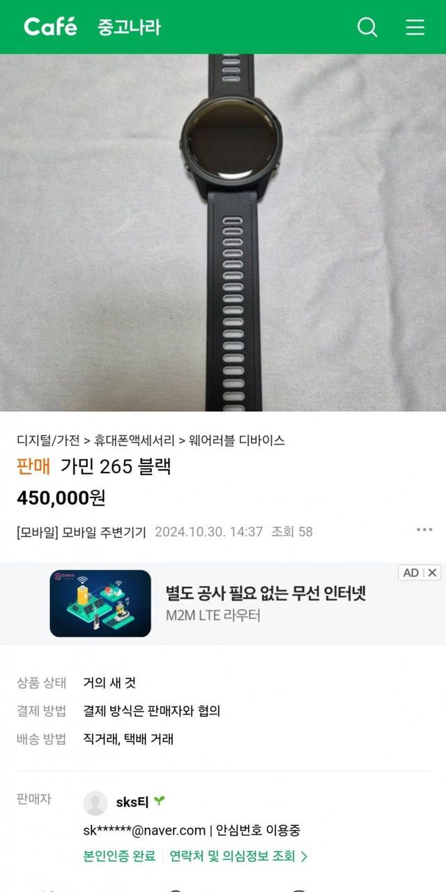 중나 매물떠서 거래하려고 문자하니까 거리가 멀어서 택배거래해야겠더라고