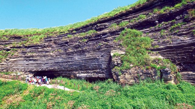 수월봉은 1만8000년 전 펄펄 끓는 마그마가 차가운 물과 만나 격렬히 분출하며 잘게 부서진 화산재가 주변에 떨어져 형성된 고리 모양 화산체의 일부다. 높이 77m의 작은 언덕형태의 오름이지만, 해안절벽을 따라 드러난 화산쇄설암층에서 다양한 화산 퇴적구조가 관찰돼 화산학 연구의 교과서 역할을 하고 있다.