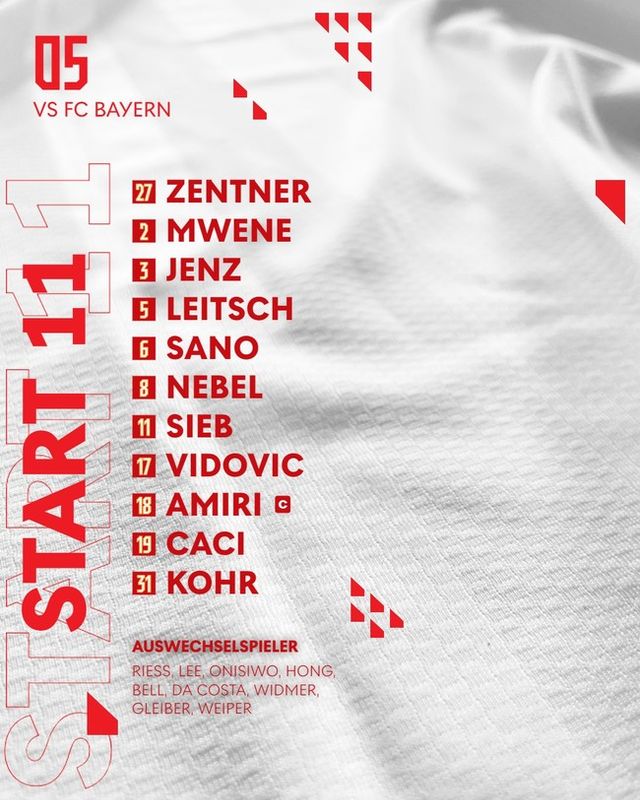 뮌헨은 마누엘 노이어, 김민재, 조슈아 키미히, 세르주 그나브리, 해리 케인, 르로이 사네, 에릭 다이어, 주앙 팔리냐, 알폰소 데이비스, 콘라드 라이머, 자말 무시알라가 선발로 나선다.