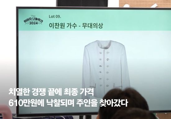 특히, 27일 진행된 명사 기증품 경매 현장은 이찬원의 의상이 등장하는 순간 열기가 더해졌다. 5만 원에서 시작한 호가는 순식간에 100만 원, 200만 원을 돌파했고, 마지막에 610만 원을 제시한 강 모 씨가 낙찰의 주인공이 됐다.