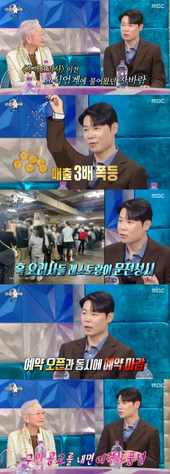 특히 최현석은 '흑백요리사' 이후 달라진 매출에 대해서도 언급했다. 최현석은 "요식업계가 많이 힘든 상황이었다. 제 레스토랑도 적자를 본 적이 있다. '어떻게 버티나' 고민을 하고 있었는데, '흑백요리사' 이후에 레스토랑 매출이 3배정도 올랐다"고 했다.