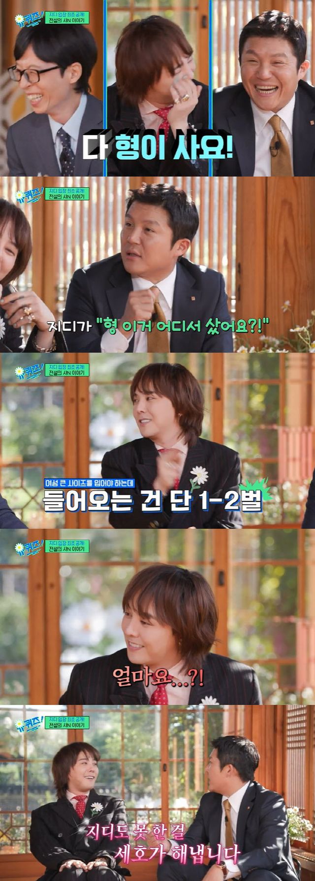 이어 지드래곤은 “가격이 어마어마하다. 저도 홀드를 하는 건 ‘얼마요? 생각해볼게요’라고 한다. ‘어우 이 돈을 어떻게 주고 사’ 하는데 ‘주고 샀어 형?’, ‘너무 비싸지 않아요?’, ‘이거 어떻게 사’”라고 말해 웃음을 안겼다.