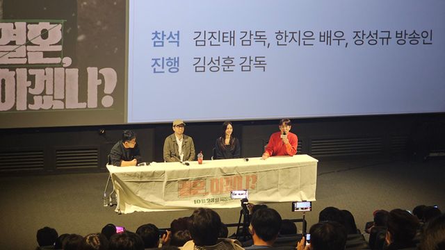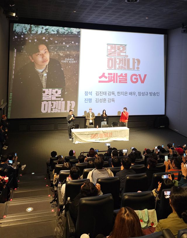 지난 29일 오후 CGV용산아이파크몰에서 영화 ‘결혼, 하겠나?’ 스페셜 GV가 진행됐다. 이날 장성규는 특유의 입담으로 GV 진행을 맡아 다채로운 이야기를 나눴으며, 배우 한지은과 김진태 감독 그리고 ‘공조’, ‘수사반장1958’ 등을 연출하고 ‘결혼, 하겠나?’의 제작을 맡기도 한 김성훈 감독이 참석해 영화에 대한 깊이 있는 이야기를 나눴다.
