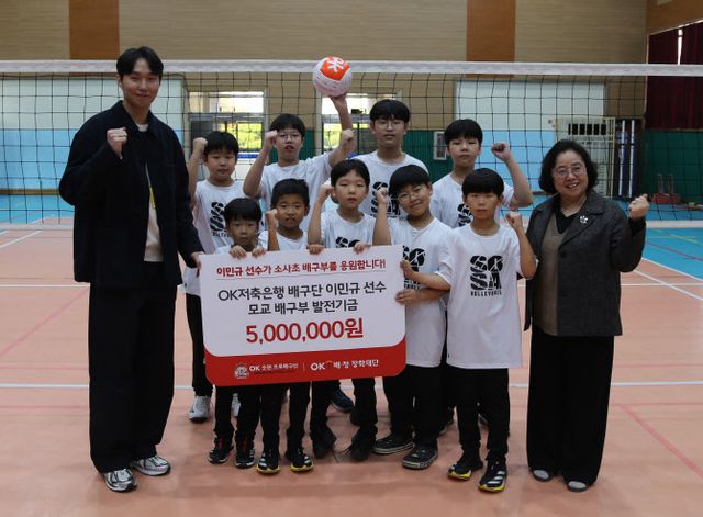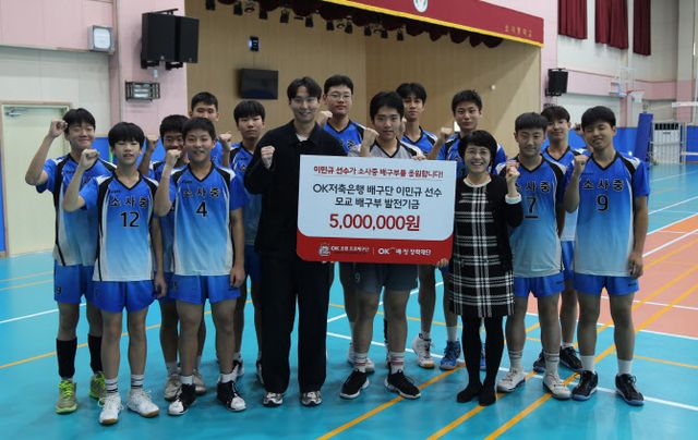 OK저축은행 읏맨 프로배구단은 이민규(32)가 모교 배구부 3곳(소사초등학교, 소사중학교, 송림고등학교)에 각각 500만원씩 총 1500만원을 기부했다고 31일 밝혔다.