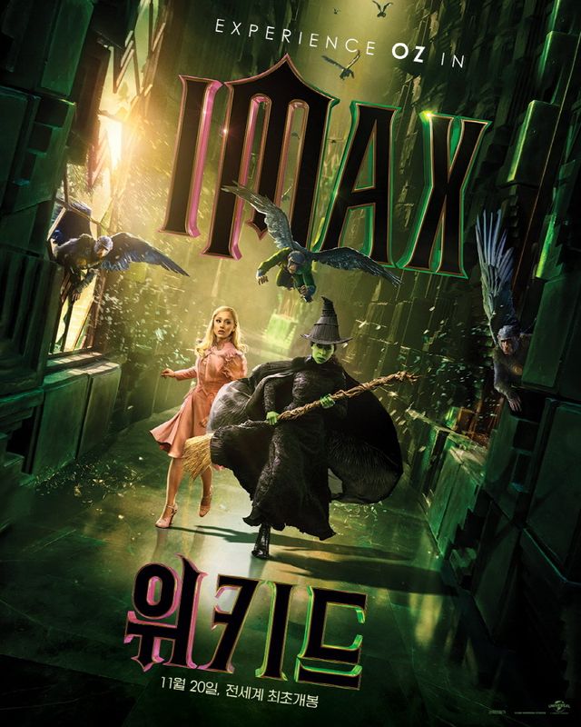 ‘위키드’는 자신의 진정한 힘을 아직 발견하지 못한 ‘엘파바’(신시아 에리보)와 자신의 진정한 본성을 발견하지 못한 ‘글린다’(아리아나 그란데), 전혀 다른 두 인물이 우정을 쌓아가며 맞닥뜨리는 예상치 못한 위기와 모험을 그린 이야기. IMAX, Screen X, 4DX, 돌비 시네마 등 전 포맷 예매가 진행 중인 가운데 이례적으로 국내 최초 전 포맷 더빙 버전 상영까지 확정하며 오리지널과 더빙 두 가지 버전으로 영화를 보다 생생하게 즐길 수 있게 됐다.