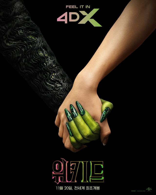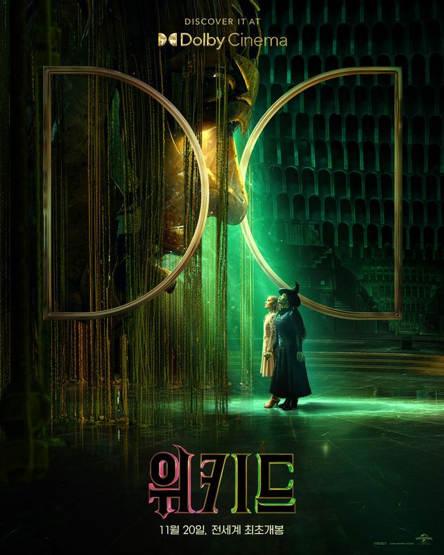 또한 엘파바와 글린다의 맞잡은 손이 돋보이는 4DX 포스터는 특별한 우정을 나누는 두 사람의 이야기와 함께 펼쳐질 스펙터클을 오감으로 즐길 수 있을 것을 예고해 더욱 기대를 모은다. 마지막으로 영롱한 에메랄드 빛을 내뿜는 마법사의 움직이는 동상을 마주하고 있는 엘파바와 글린다의 모습을 그려낸 돌비 시네마 포스터는 마치 캐릭터들과 한 공간에 있는 듯한 공간감을 선사하는 것은 물론, 울림 있는 OST의 감상을 극대화할 것을 예고한다. 이렇듯 다채로운 극장 경험을 가능케 할 특별관 포스터를 공개한 ‘위키드’는 두 눈과 귀를 사로잡는 화려한 볼거리와 OST로 전 세계 극장가를 매료시킬 것이다.