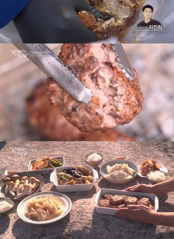 산골 부부가 목청을 얻으면 꼭 해 먹는다는 목청꿀 떡갈비와 자연산 버섯이 듬뿍 들어간 능이 닭볶음탕, 꿀로 재운 섭산삼까지 기력을 회복시키는 가을 야생의 산중진미 밥상이 완성되자 지진희는 “이 상이야말로 수라상이 부럽지 않다”라면서 입맛을 다시기도 했다고.