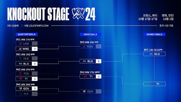 라이엇게임즈는 11월 2일 영국 런던에 위치한 O2 아레나에서 2024 리그 오브 레전드 월드 챔피언십의 우승자를 가리는 결승전이 열리며 디펜딩 챔피언인 LCK 대표 T1이 LPL 1번 시드인 빌리빌리 게이밍(BLG)을 상대로 2년 연속 우승에 도전한다고 31일 밝혔다.