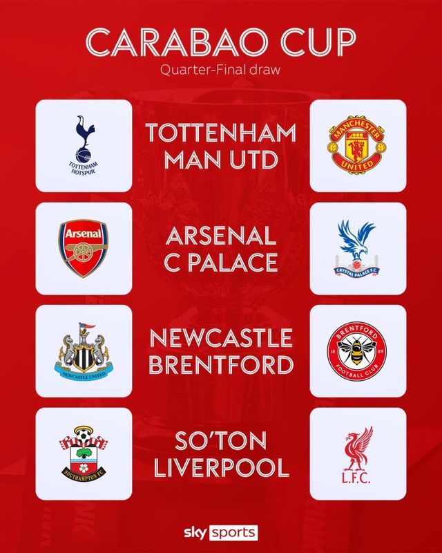 이밖에 아스널은 크리스털 팰리스와, 뉴캐슬 유나이티드는 브렌트퍼드와 각각 대회 4강 진출을 놓고 다툰다. 리그컵 8강전은 현지시간으로 오는 12월 16일에 열릴 예정이다.