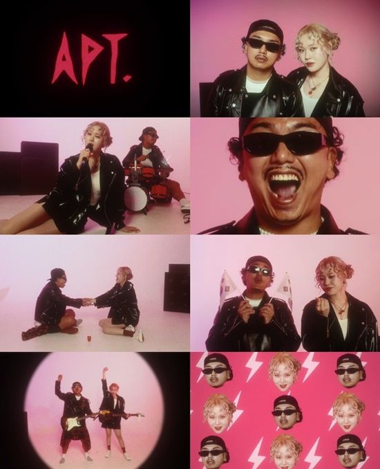 곽범, 엄지윤은 ‘APT.’ 뮤직비디오를 싱크로율 100%의 퀄리티로 완벽히 커버해 눈길을 끌었다. 공개된 영상 속 각각 ROZÉM(노잼), Bruzi Mar(부르지 마)로 변신한 엄지윤과 곽범은 원곡의 스타일링은 물론 로제와 브루노 마스의 표정, 느낌까지 찰떡같이 소화하며 보는 이들의 폭소를 유발했다.