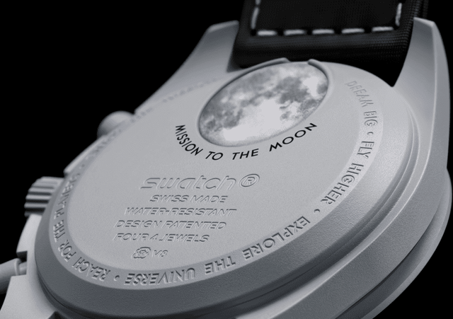 또한, 이번 컬렉션은 특허 소재 바이오세라믹(Bioceramic)으로 제작됐다. 베젤에는 블랙 컬러의 속도계 눈금과 새롭게 탄생한 라이트 그레이 컬러의 마커가 눈길을 끈다. 특히, 배터리 커버에는 인류 최초로 달에 발을 내딛은 ‘닐 암스트롱’의 발자국이 새겨진 달의 모습이 담겨 우주 탐사의 경이로움을 표현했다.
