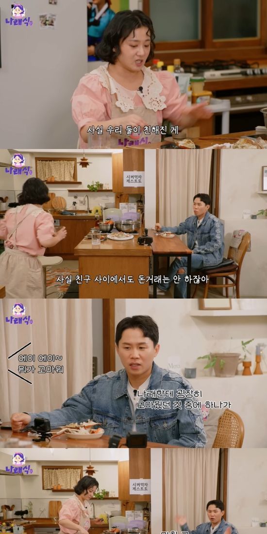 이에 양세형은 "진지하게 먹튀할까 생각했다"고 농담하면서도 "아무튼 그 때 나래가 융통해줘가지고 그 집에서 되게 좋은 일들이 많았다"고 고마워했다.