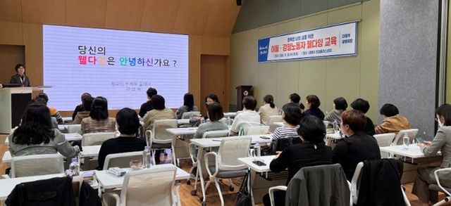 이날 교육에는 이동노동자, 감정노동자 등 업무 특성상 스트레스를 많이 받는 직종에 종사하는 30여 명이 참석했다.