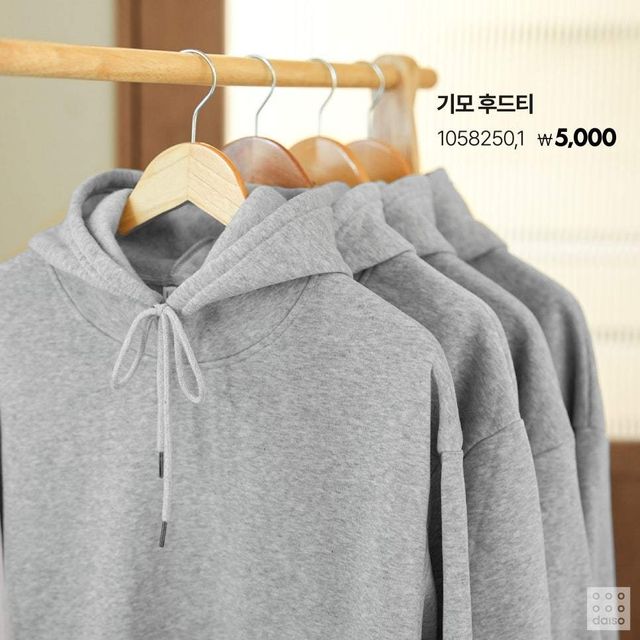 유통업계에 따르면 다이소는 다음 달 중순 5000원짜리 기모 후드티를 출시할 예정이다. 회색 무지 디자인의 이 후드티는 기모 안감으로 보온성을 강화해 겨울철 기본 아이템으로 활용할 수 있다.