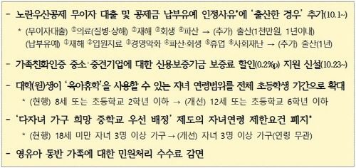 특히 현재 공공기관에서 공개하고 있는 남녀 육아휴직 사용률은 민간기업도 의무공개하도록 하고, 내년 1월부터는 일·가정 양립 우수 중소기업의 세무조사를 최대 2년 유예할 예정이다.